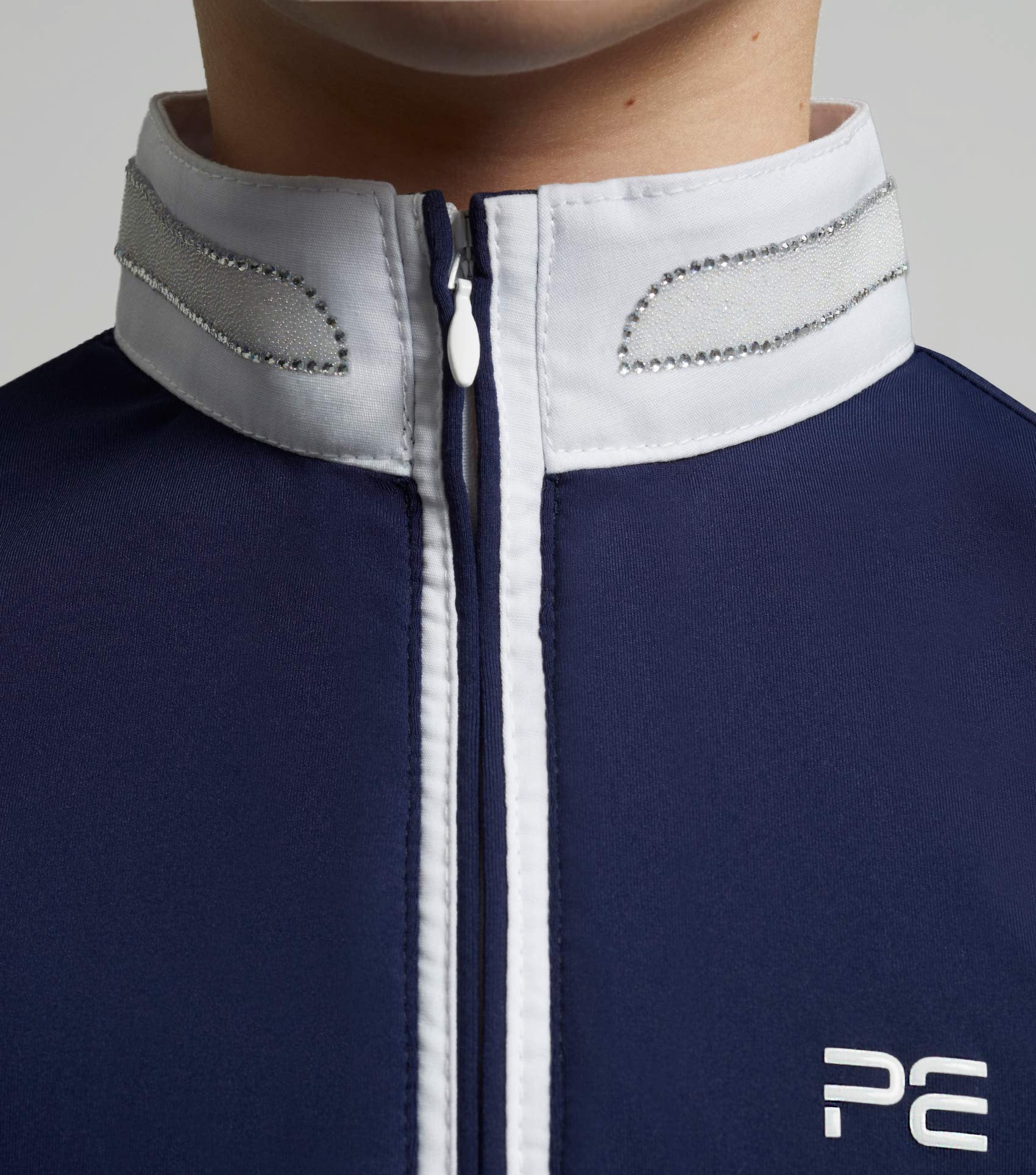 Embellished diamante details set the tone of this girls competition shirt which has been crafted from our high quality nylon jersey for a style that truly performs. The main body is constructed from a four-way stretch fabric with excellent moisture wicking properties. This technical fabric will help keep you cool whilst looking effortlessly stylish in the show ring.