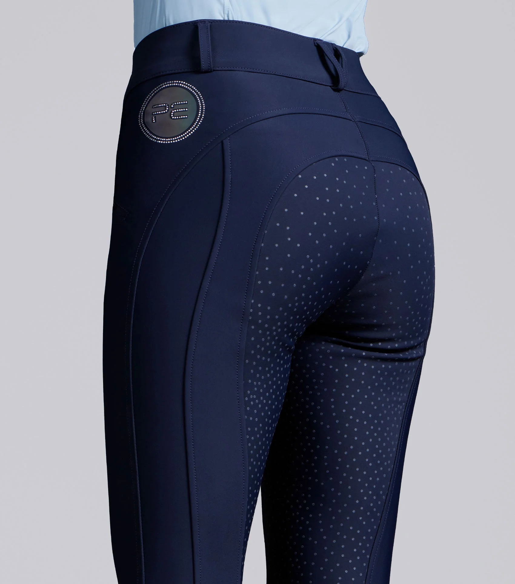 Engineered for dynamic performance with a high-shine twist, these full seat breeches deliver precision fit, technical performance, and a touch of statement sparkle. Made from sporty soft-shell fabric with a water- and dirt-repellent finish, theyāre built to move with you, offering four-way stretch, UV protection, and breathable comfort. Contour panelling at the back creates a clean, sculpted silhouette, while matte silicone grip provides quiet, confident security in the saddle. Finished with a bold iridescent logo and silver diamante crystal embellishment, these breeches bring polish and performance together in one standout piece.