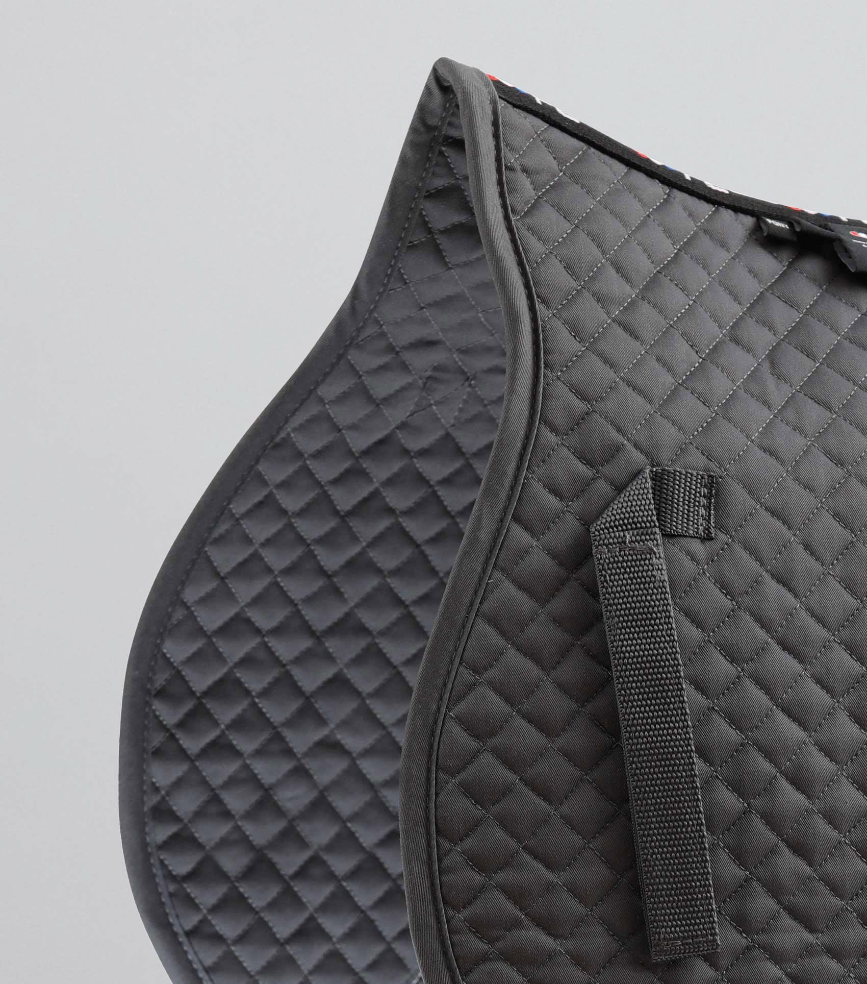 Made entirely from high quality cotton and featuring a 600-denier polyester anti-rub girth panel, this is the ideal every day or competition saddle pad for ponies.