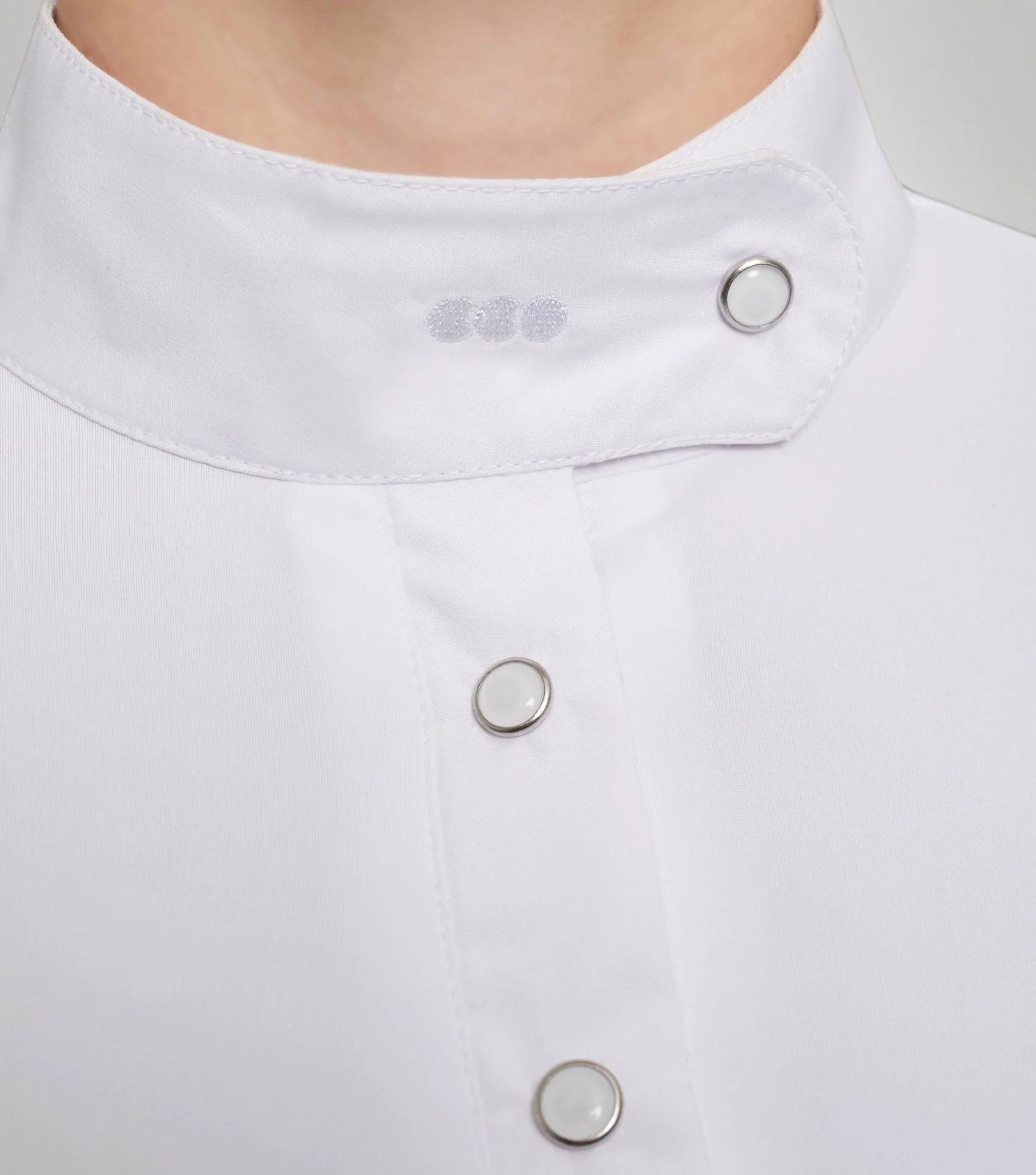 Finished with a stylish stand collar and pleated cuffs: both accented with subtle tonal PE branding, the Rossini Lycra Show Shirt is everything you need to complete your competition look.Ā