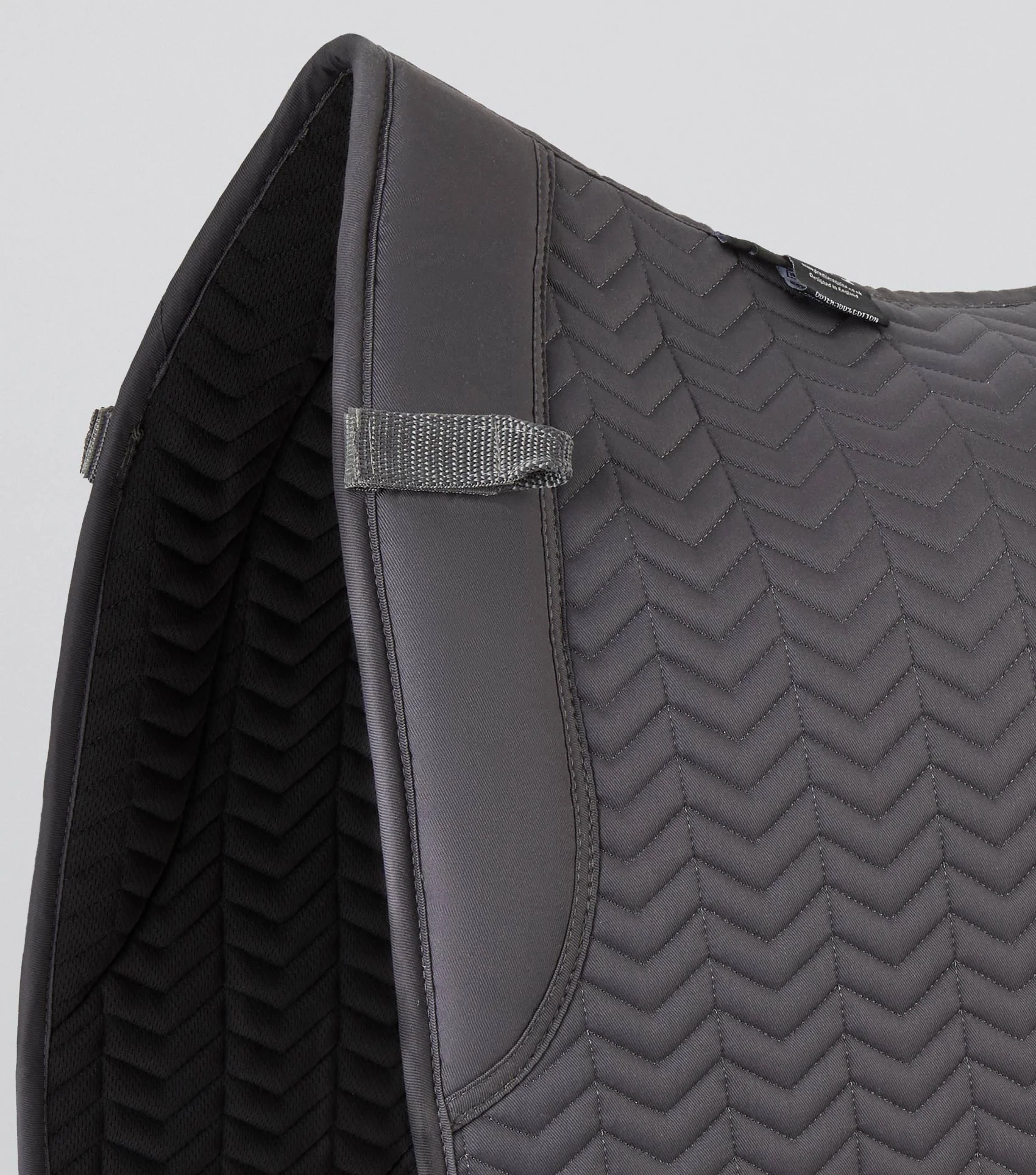 With a desirable chevron quilting profile, this dressage saddle pad has been crafted from high quality cotton for comfort and performance. Adjustable Velcro D loop straps and Velcro girth straps allow you to secure your saddle.Ā